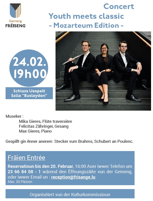 with Felicitas Zähringer (Vocals), Max Gieres (Piano) and Mika Gieres (Flute) organized by the cultural commission of the municipality of Frisange